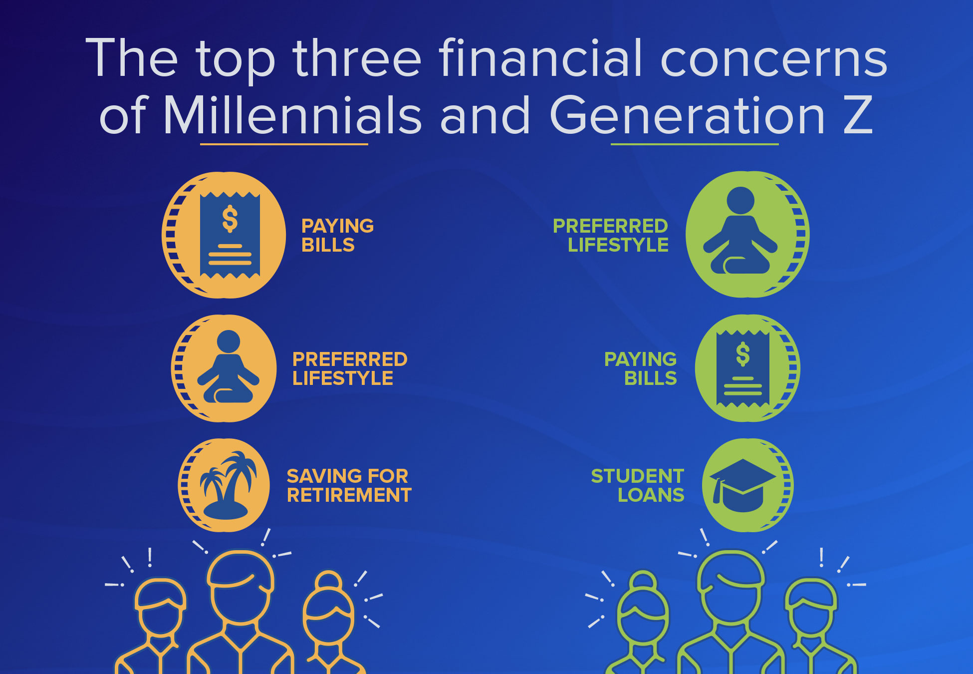 While these differences in priorities may be attributed in large part to the specific life stage that each generation is in, the differences we found between these two generation’s top financial concerns may signal more fundamental differences in how they think about money.